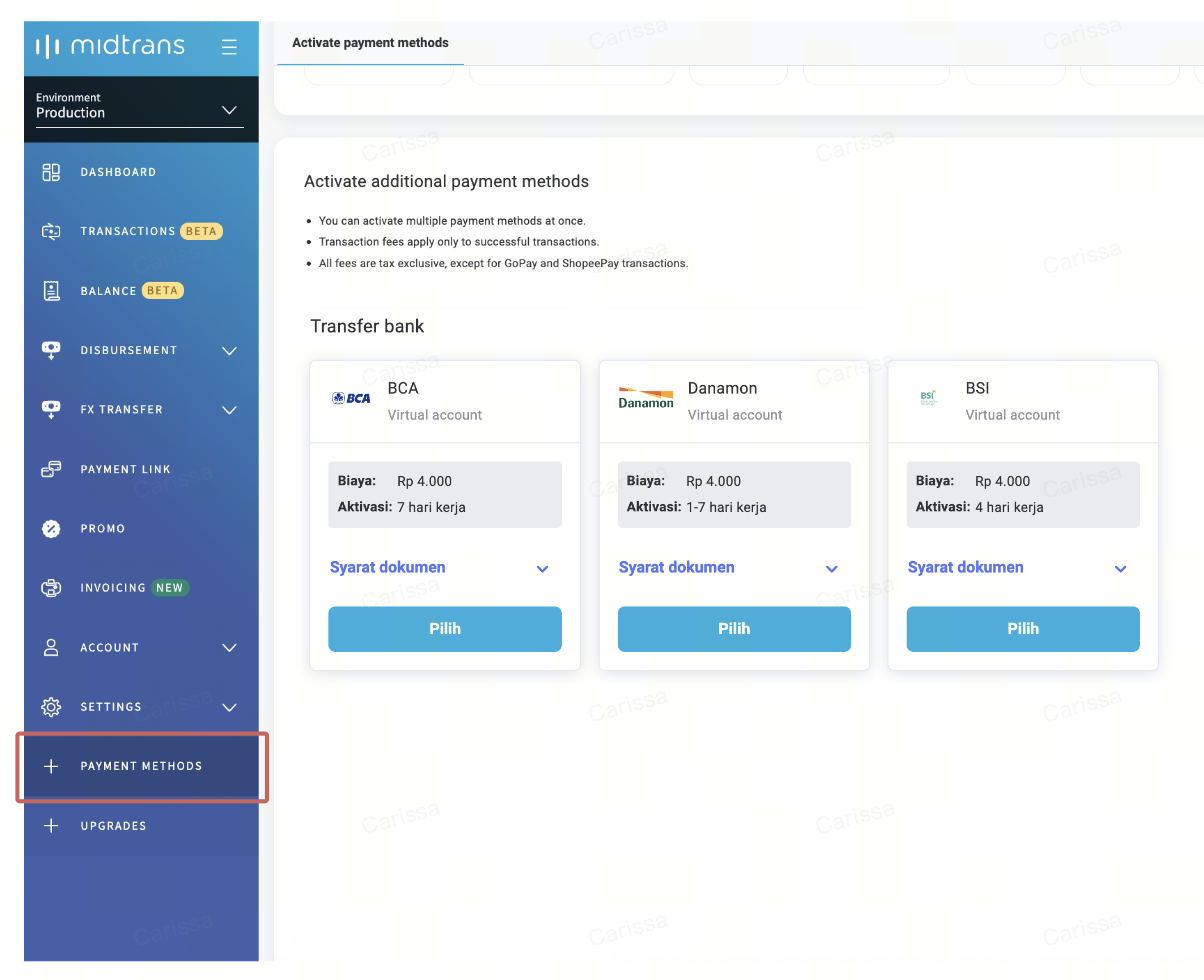 To enable these payment methods, simply go to your Midtrans Dashboard and open the Add New Payment Method menu to register.