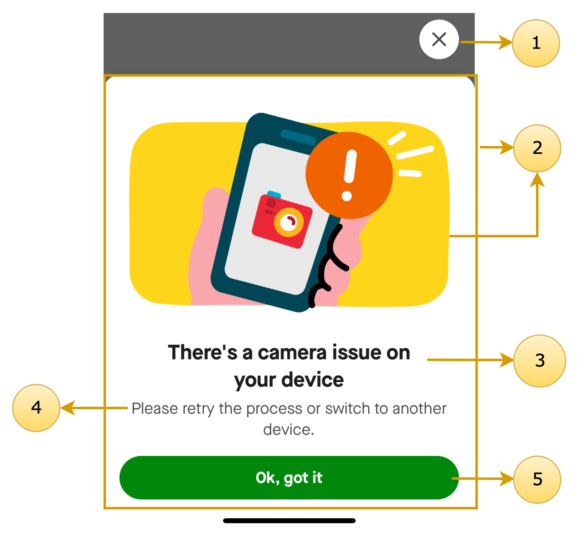 ![]() | 1. closeButton 2. card 3. title 4. description 5. primaryCTA |