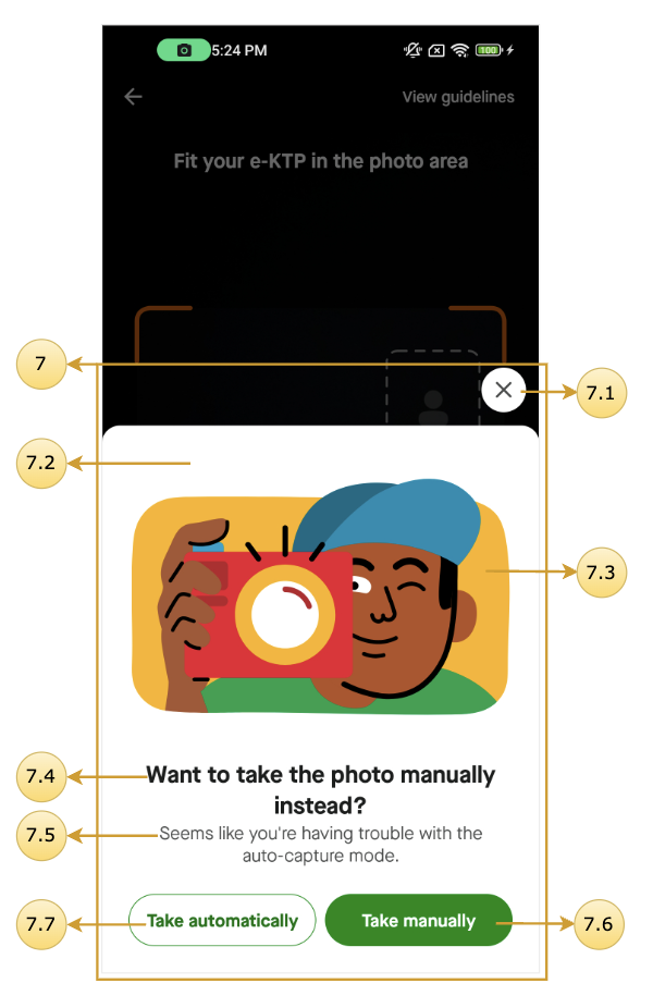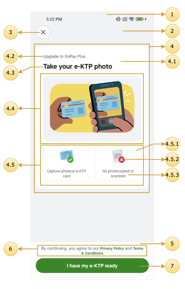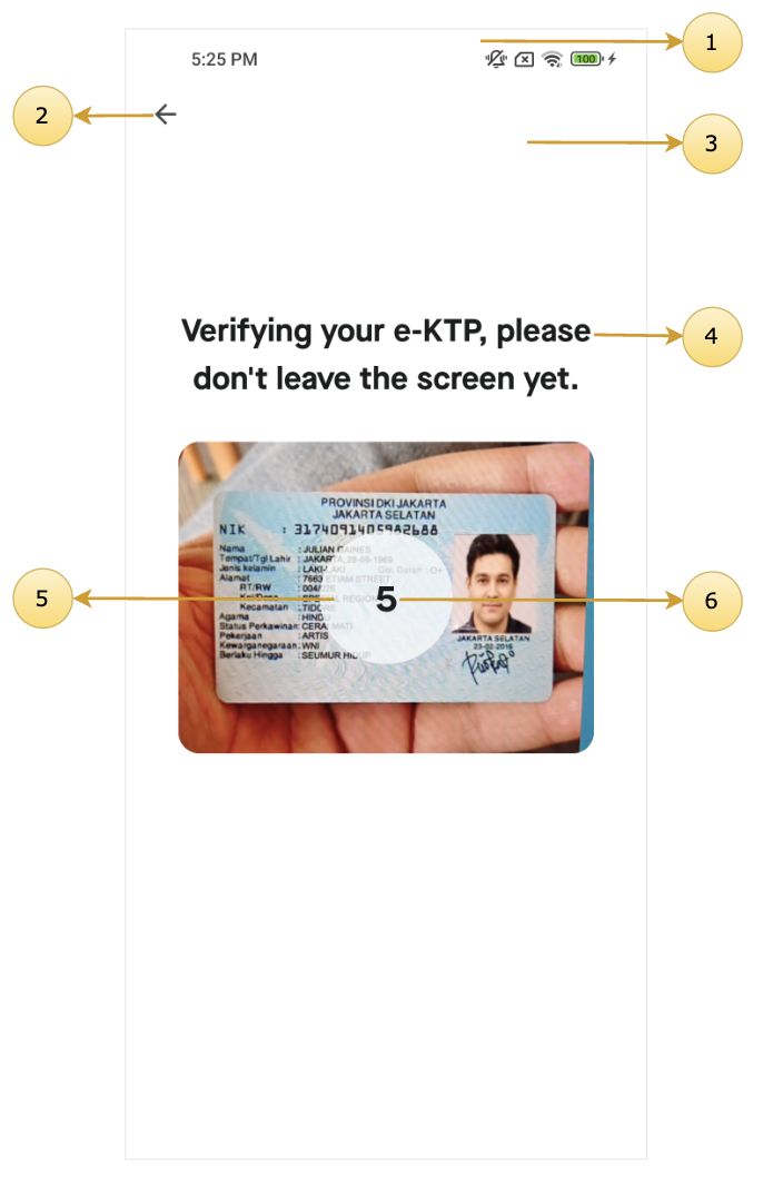 - theme: [Optional] It is an instance of the DigitalIdentityKTPScanFlowTheme class. If we need to customize the themes for the KTP Scan flow screens, then we need to pass the customized theme values. Refer to the theme customization section for more details.
