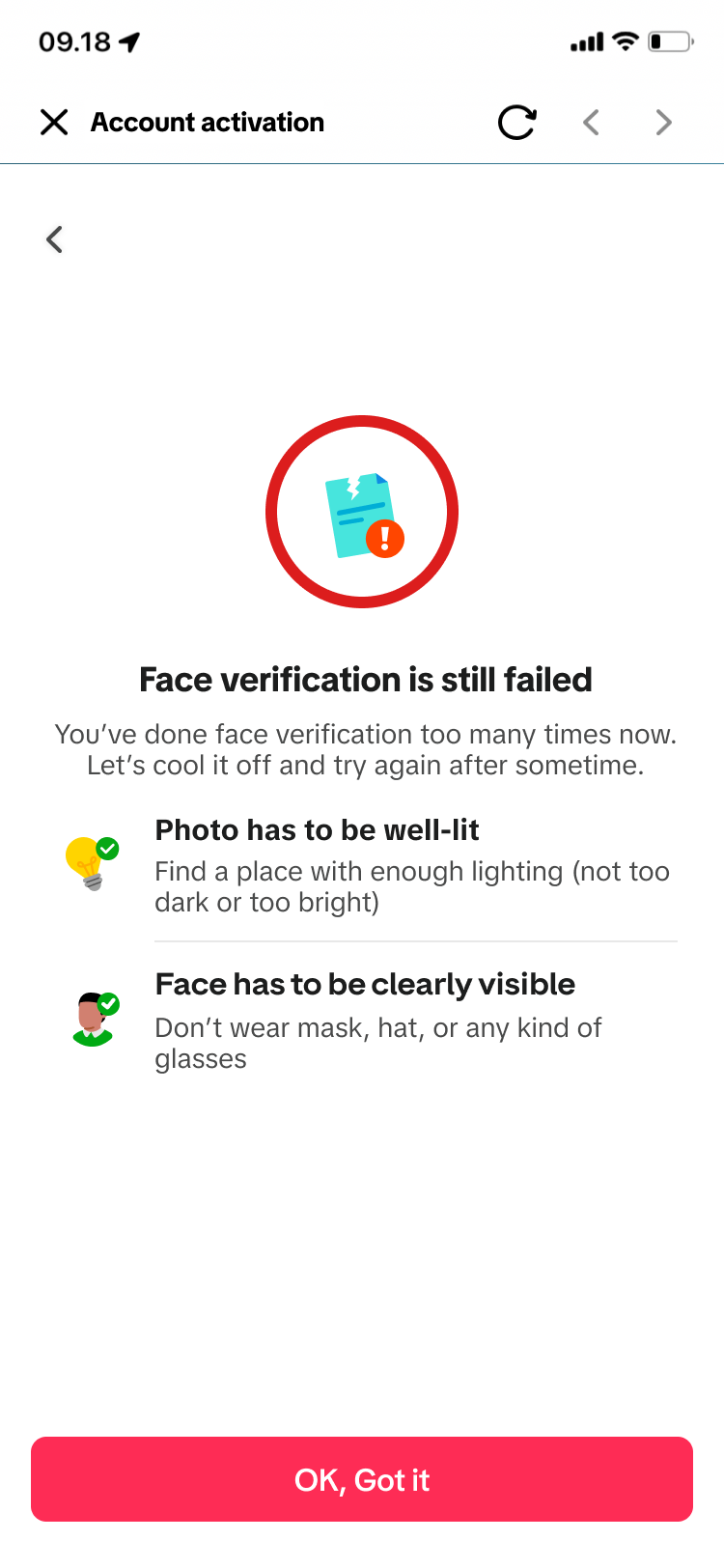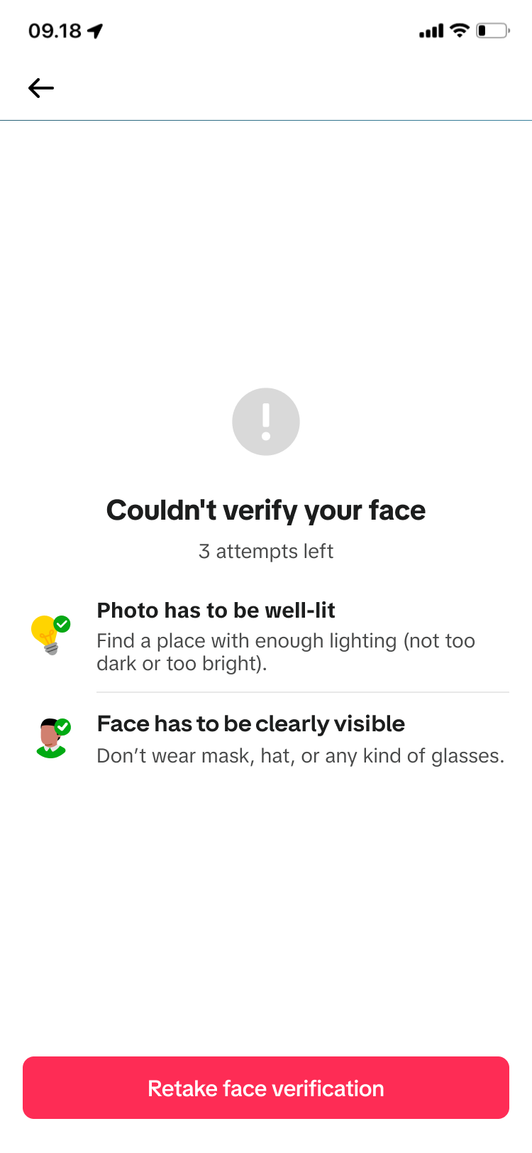 Face Verification Status screen (Failure) | ![]() ![]() |