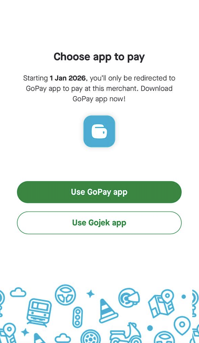 Starting 1 January 2026, all users will be redirected to complete payment on the GoPay app only. Refer to the top section of this page.
