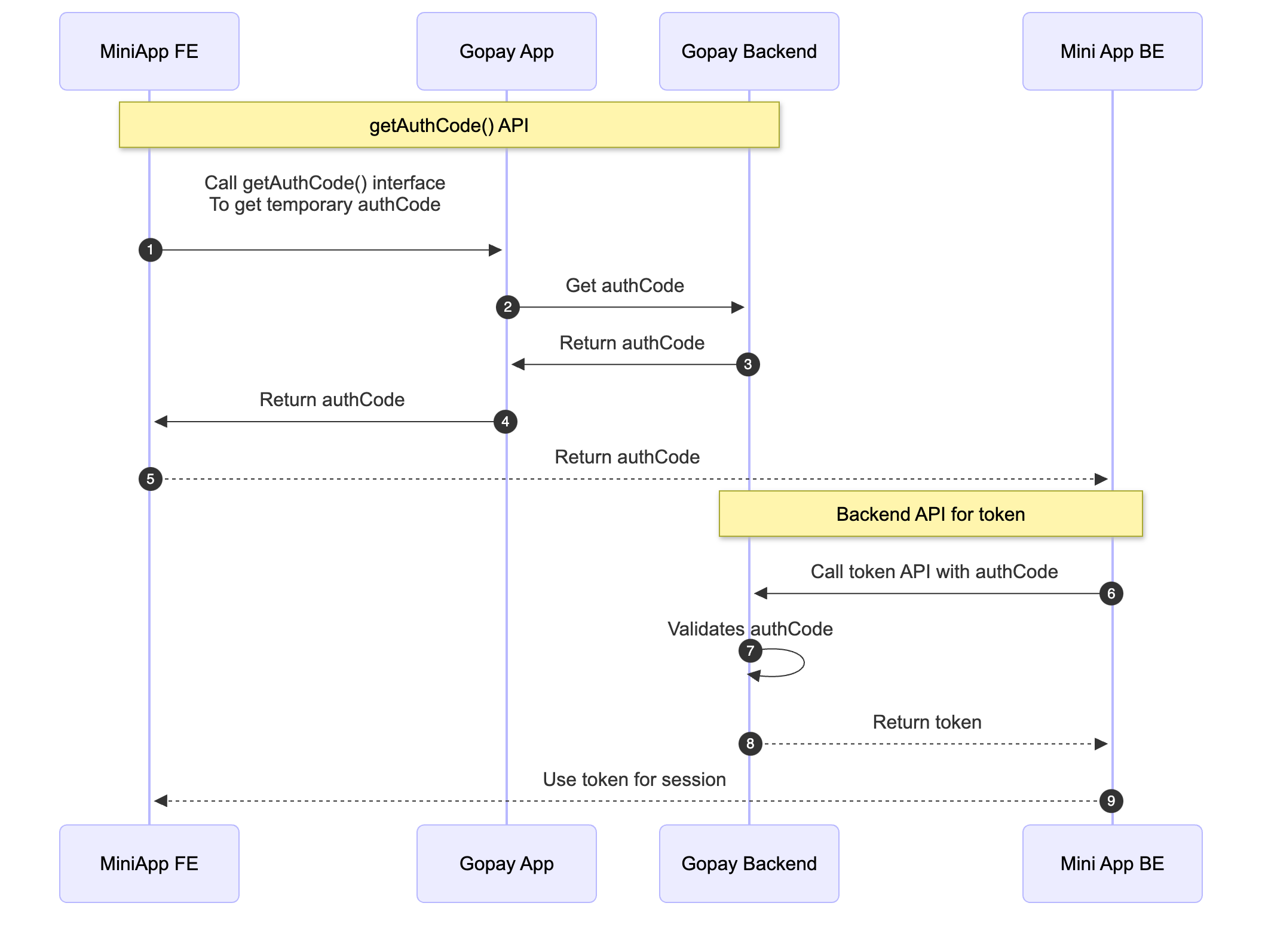 Mini App Backend | Mini App backend will call to GoPay backend to fetch authorization token. |